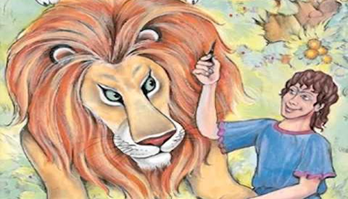 Yendo así encontró a un pastor, y llegándose a él, comenzó a menear la cola, teniendo la mano alzada. El pastor que lo vio venir, turbado por su presencia, comenzó a darle del ganado para que comiese, mas el león no deseaba comer, sino que le sacara la espina clavada, entendió lo que quería el león, y con una lezna aguda, le abrió poco a poco el tumor, y le sacó la espina.